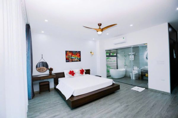 Trong nhịp sống bận rộn, ai cũng có lúc mong tìm được một nơi chốn bình yên để hít thở không khí trong lành và tái tạo năng lượng cho cơ thể và tâm trí. Với gia chủ của Areca Villa – một Dược sĩ và một Lương y – mong ước ấy càng trở nên mãnh liệt, bởi chúng tôi luôn tin rằng thiên nhiên, cây cỏ và không gian xanh chính là những “liều thuốc” quý giá nhất mà tạo hóa dành cho sức khỏe con người. Sau nhiều năm tìm kiếm, chúng tôi đã tìm thấy nơi chốn ấy tại Venus Resort by Flamingo – thung lũng được bao bọc bởi rừng thông xanh mát, chỉ cách Hà Nội khoảng 50 phút lái xe nhưng đủ xa để rời khỏi khói bụi và ồn ào của phố thị. Areca Villa nằm trên triền đồi cạnh rừng thông trăm tuổi, nơi mỗi sáng có thể lắng nghe tiếng gió qua tán cây và ngắm nhìn những dãy núi xanh trải dài bất tận. Đây là ngôi nhà mà gia đình chúng tôi tìm về vào những dịp cuối tuần – và cũng là nơi chúng tôi mong được sẻ chia sự bình yên, thư thái và nguồn năng lượng từ thiên nhiên với những vị khách ghé thăm.